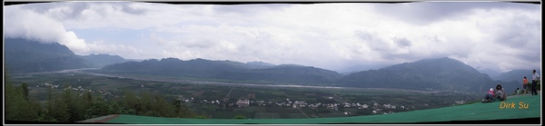 在坐夠後,決定要去鹿野高台碰碰運氣,看會不會有飛行傘在飛。果然是運氣不錯,到的時候,已經有二頂飛行傘在空中了,表演了不少稍微花一點點的動作,對新手來說應該蠻刺激的吧,幸運的是後面還有三個人繼續玩,不只可以看到在空中飛的傘,連起飛的過程也可以看到喔。鹿野高台的視野非常遼闊,有一種懸崖的感覺,下面則是開闊的平原,地點蠻好的,難怪飛行傘運動會在這個地方發展起來,聽別人的導遊說,飛一次的價位是1500/15分鐘,但是後面沒人在排的話,有機會飛的比較久一點。